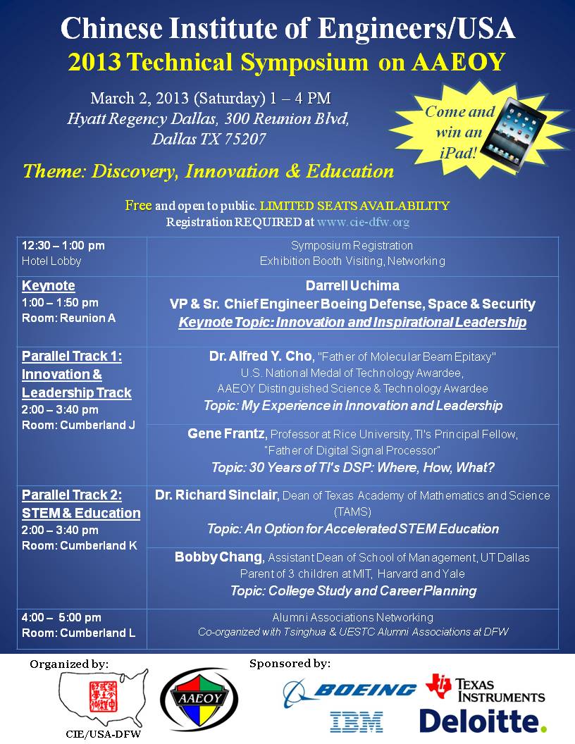 The annual AAEOY events are supported by industry leaders, national laboratories, technical communities, academia, government agencies and prominent US companies. Some 600 distinguished guests, corporate executives and community leaders will attend the 2013 AAEOY Award Ceremony on March 2, 2013, at the Hyatt Regency Hotel in downtown Dallas.