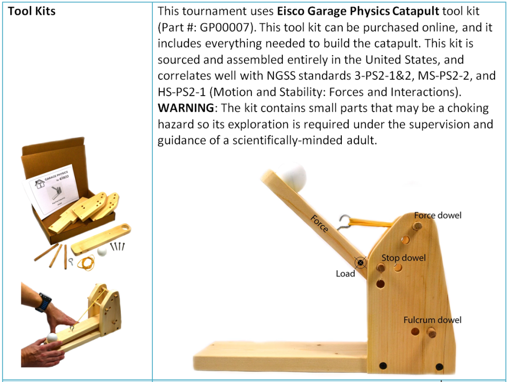 “Catapult Game” — Grades K to 5th (elementary-school). See bottom for project details.