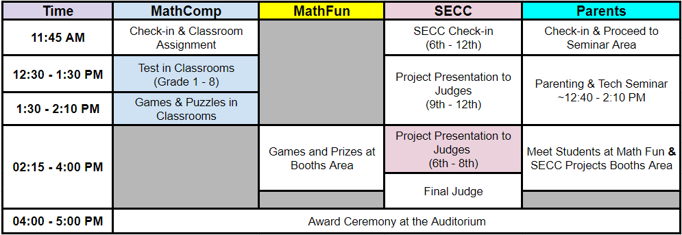 While students are competing at the MATH test, all parents are invited to attend the Parenting Seminar and Panel Discussion, which is free to MathComp & SECC participants\’ parents.