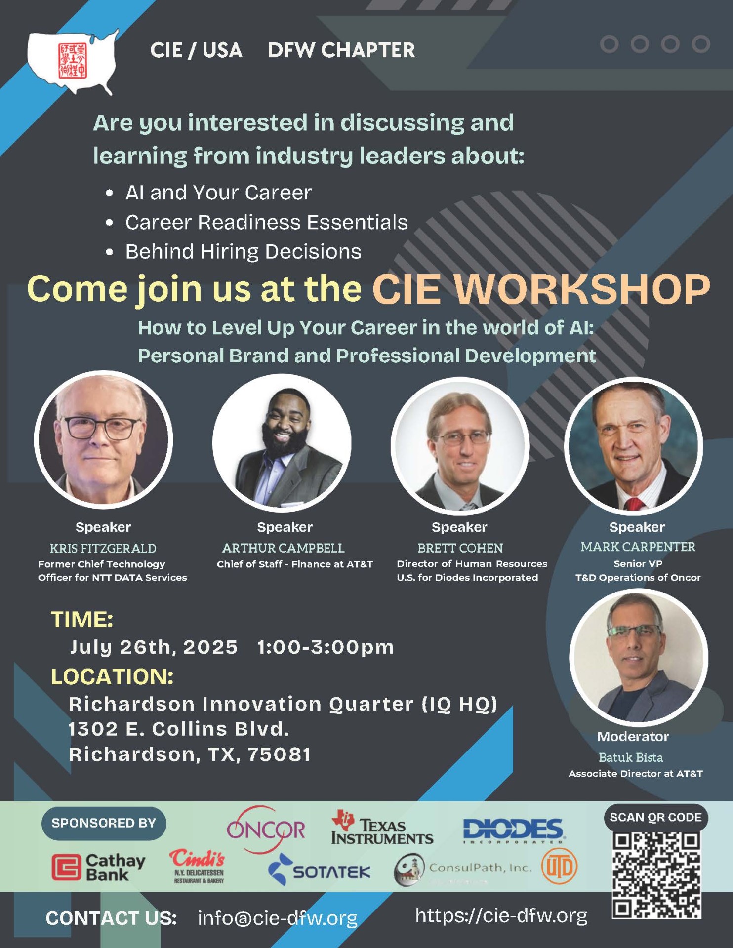 2024 CIE/USA-DFW Young Achiever Award Application New Deadline is June 14, 2024! (Supplemental materials can be submitted later, see note below) The Young Achiever Award (YAA) is one of the flagship programs of CIE/USA-DFW. The YAA is designed to encourage and recognize the younger generations of CIE members to achieve high academic performance, develop leadership skills, […]